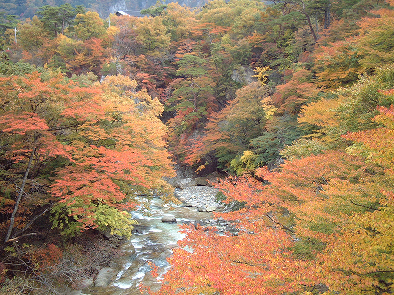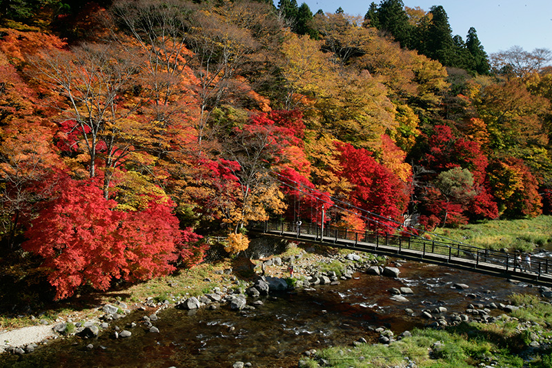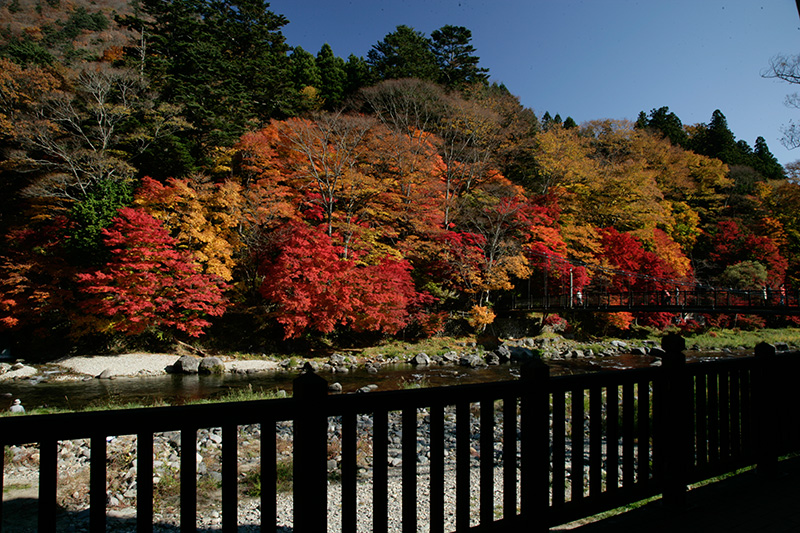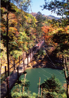 昭和62年(1987年)に完成した全長100m・高さ約30mの吊橋です。数多くある塩原の吊橋の中でもその高さと眺めは随一です。遠く、もみじ谷大吊橋を眺めることができます。
