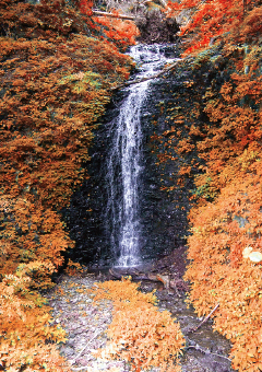 不動滝を渡り、更に古道を進むと30〜40m先に、「こんな近くにこんな名瀑が」と思わせる爽やかな、心洗われるような滝がある。修験者が流れ落ちる滝を幣束とし、水垢離や祈祷をした姿が浮かぶような滝である。なお、浪漫街道からも注意して見れば木の間ごしに見ることができる。